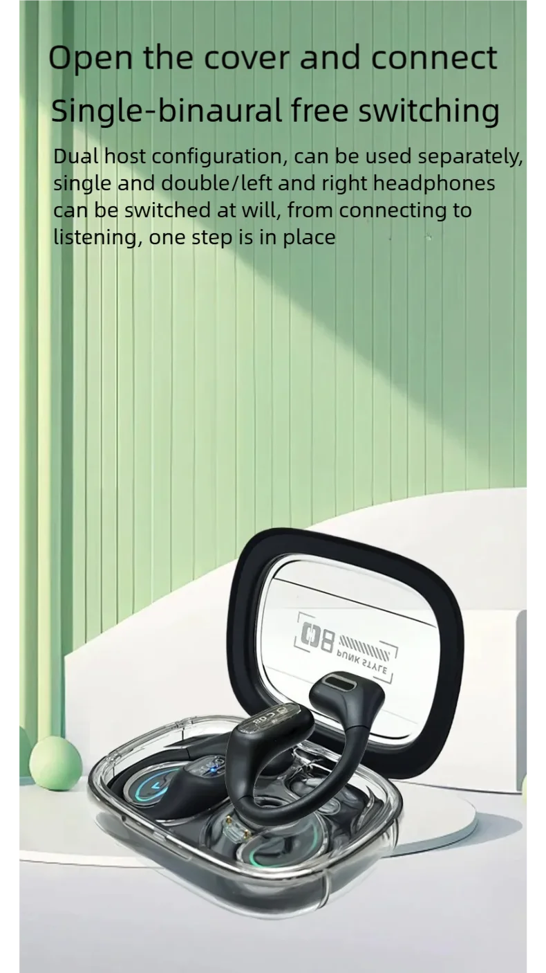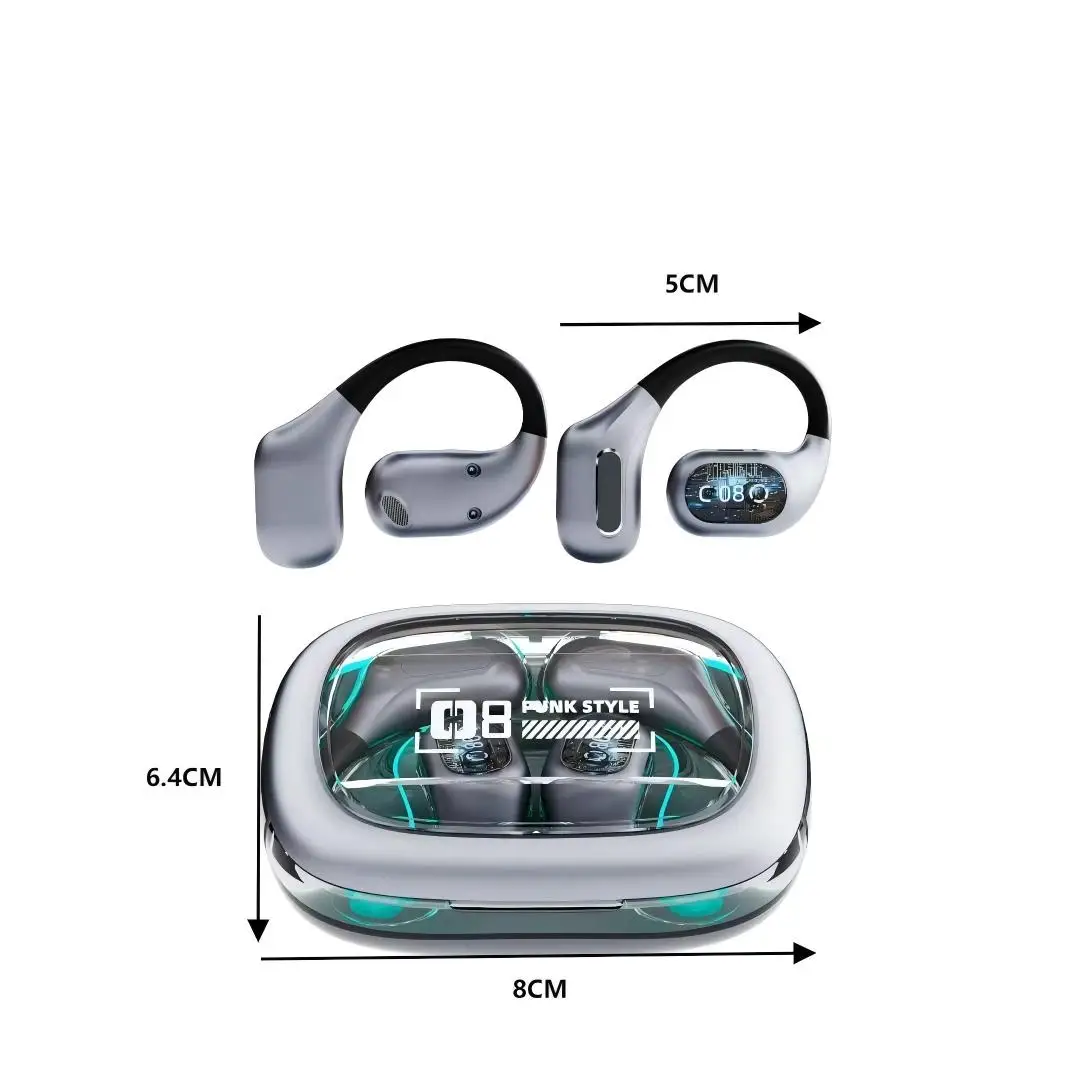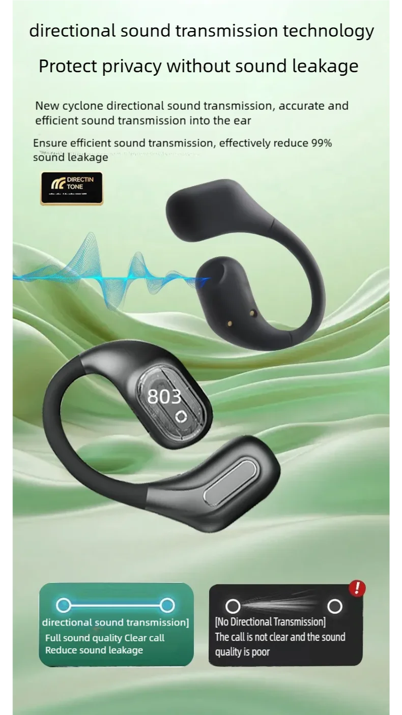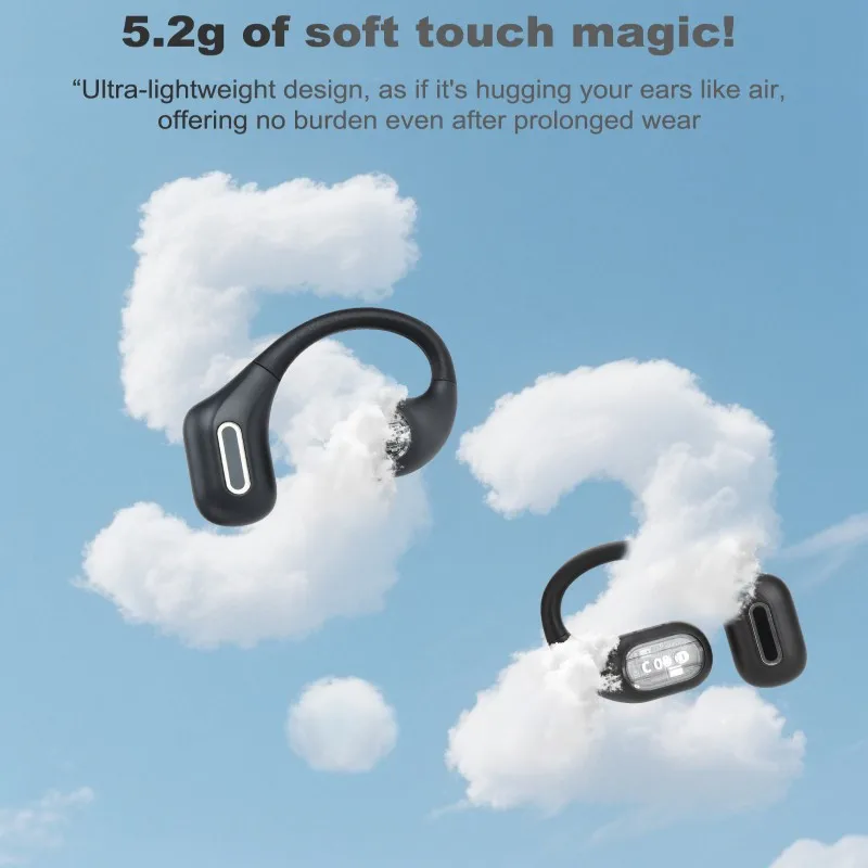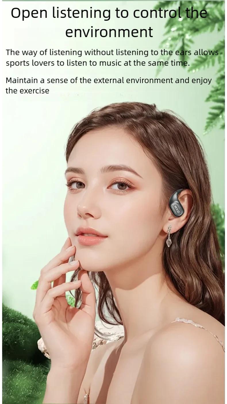 Open-Ear Earphones Wireless Bluetooth 5.4 Ear Hooks Headphones Air conduction Battery Life Headphones For Sports Hi-Res Sound - GRAY